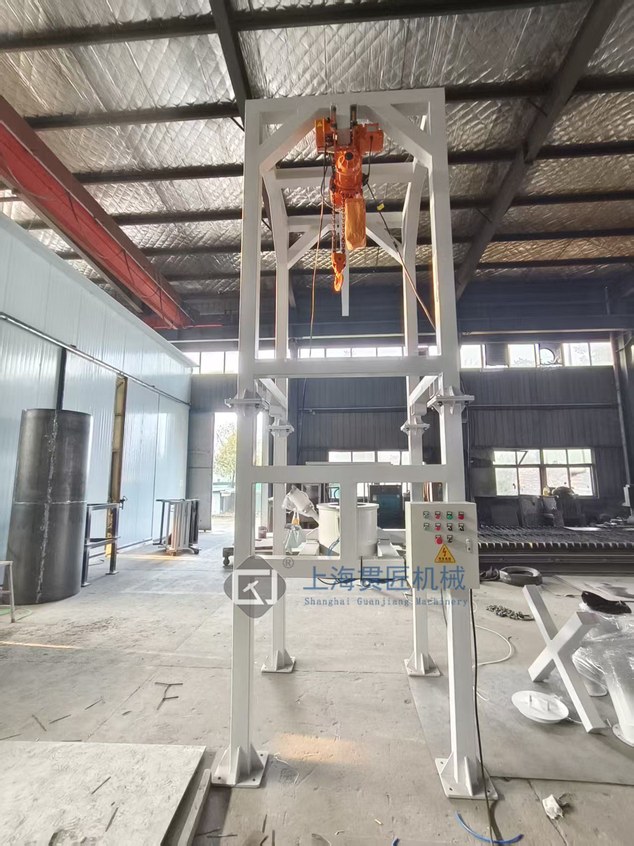 吊裝定位:通過叉車或電動葫蘆將噸袋提升至進料口,利用夾袋裝置固定袋口,確保噸袋與設備密封對接。