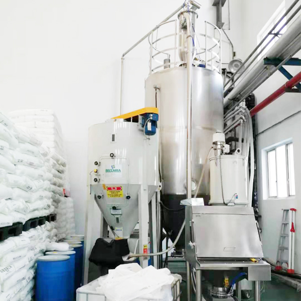 (1)真空泵通過真空輸送設備的分離容器產生真空。將物料從進料口通過吸料軟管與吸料口吸入。
